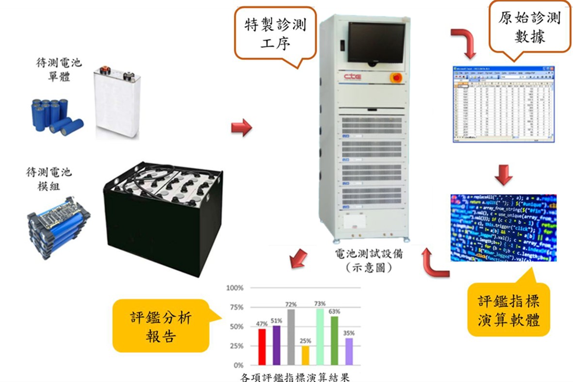 (1)AI程式庫:透過AI演算法與國內快速充電測試技術,能在6分鐘內完成一組電池健康狀況評估。
